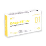 Once-Fil HV is a light curing temporary filling material. Due to its elastic and high viscous characteristics, it can be used simply, easily and suitably for temporary filling such as in-lays and on-lays.