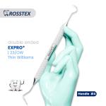 Expro XP23/OW is a double-ended dental instrument with a Williams-style probe on one end and an explorer on the other. It features a Thin Williams marking system for precise periodontal assessment, commonly used in dental exams and charting.