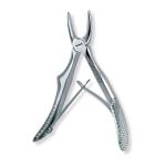 ﷼. 100.00 ﷼. 100.00 ﷼. 100.00 Extraction Forceps Fig. 101 are designed for children's upper incisors removal, featuring a 3.0mm beak size, a spring mechanism, and serrated beaks for a secure grip, precision, durability, and easy sterilization.