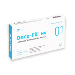 Once-Fil HV is a light curing temporary filling material. Due to its elastic and high viscous characteristics, it can be used simply, easily and suitably for temporary filling such as in-lays and on-lays.